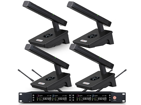 高清显示屏:高清屏幕显示,显示工作信道、工作频点、RF接收信号:AF音频信号、锁屏指示、会议座实时电量,实时反馈系统工作状态。