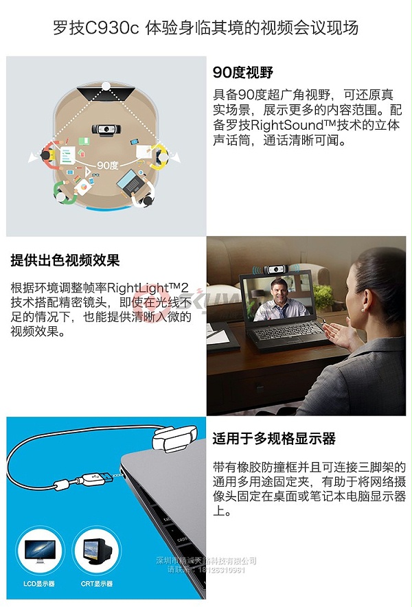 二、罗技(Logitech)C930c 功能亮点高清 1080p 画质 (30 fps)